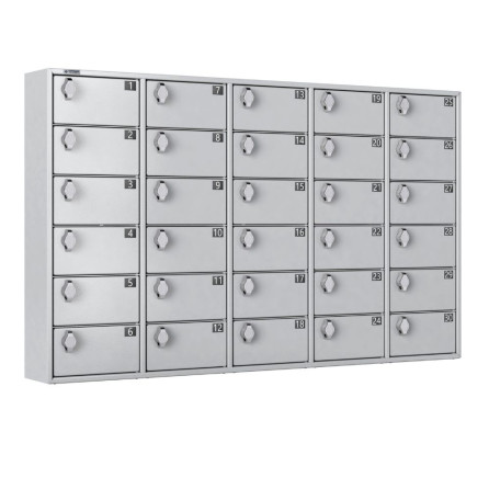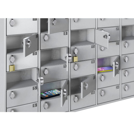 Armoire sécurisée pour téléphones portables / smartphones, conçue pour répondre aux besoins des environnements scolaires, professionnels et événementiels. Chaque utilisateur dispose d’un espace dédié et sécurisé pour son appareil. La protection des smartphones est renforcée grâce à des portes indégondables. Compacte et robuste, cette armoire sécurisée s’installe facilement grâce à ses 4 trous pour fixation murale.